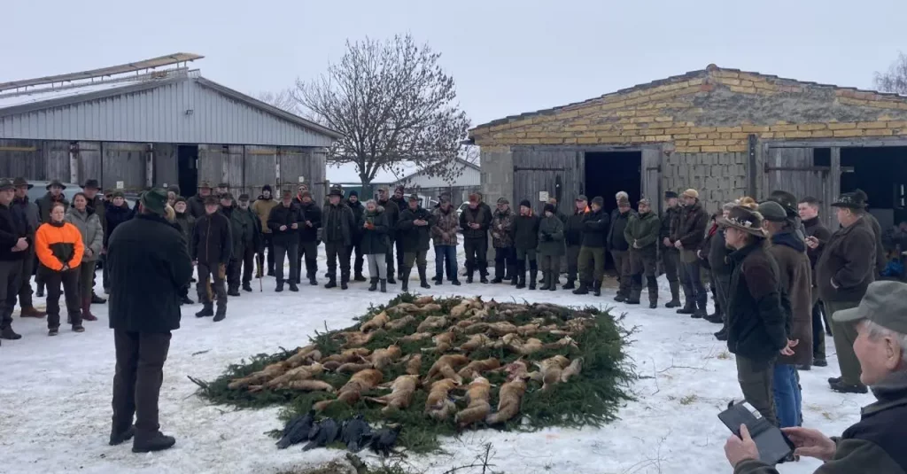 Die Strecke wurde traditionell mit Tannengrün ausgelegt und durch Jagdhornbläser würdig umrahmt. Beim anschließenden Schüsseltreiben wurden in geselliger Runde Jagderlebnisse ausgetauscht – und natürlich auch von dem einen oder anderen schlauen Fuchs berichtet, der noch einmal entkommen konnte.